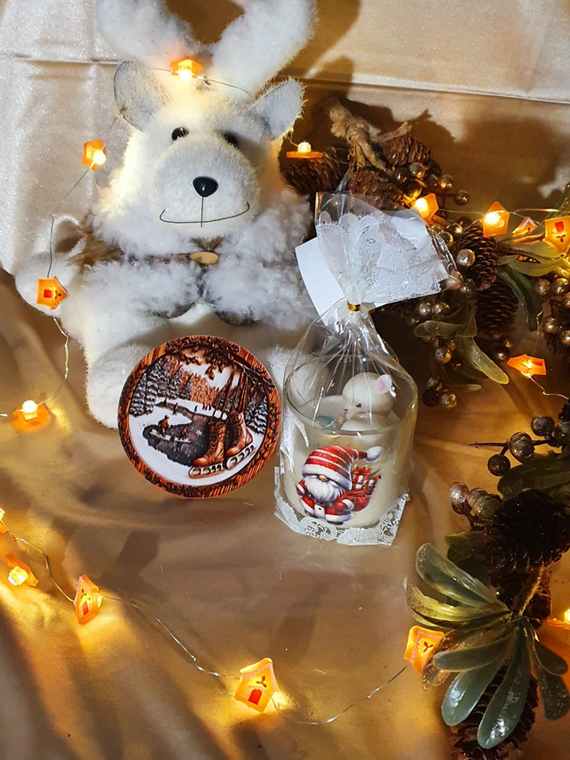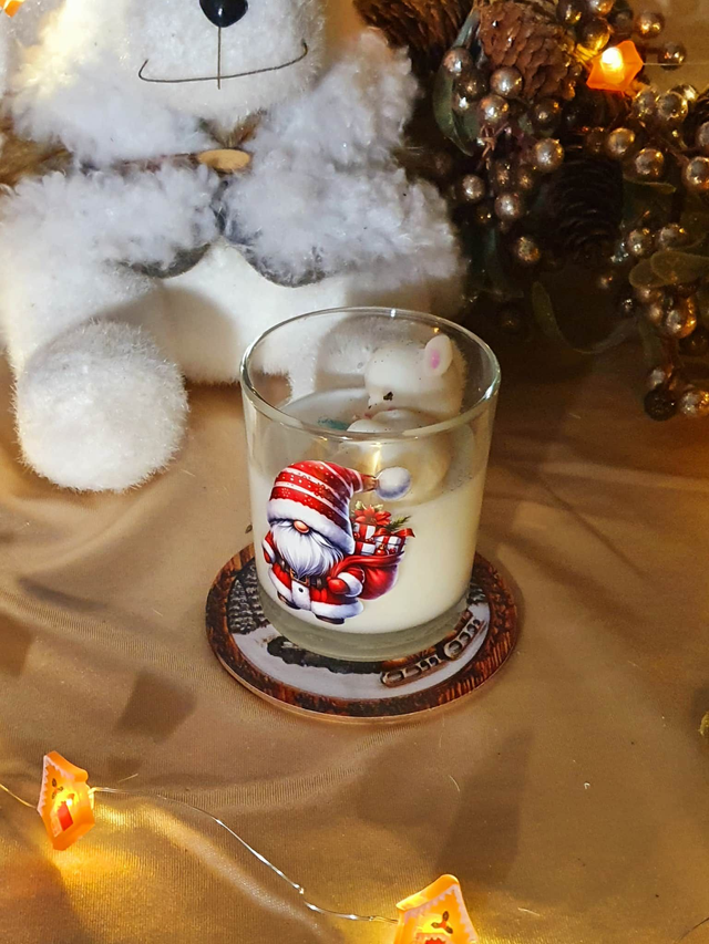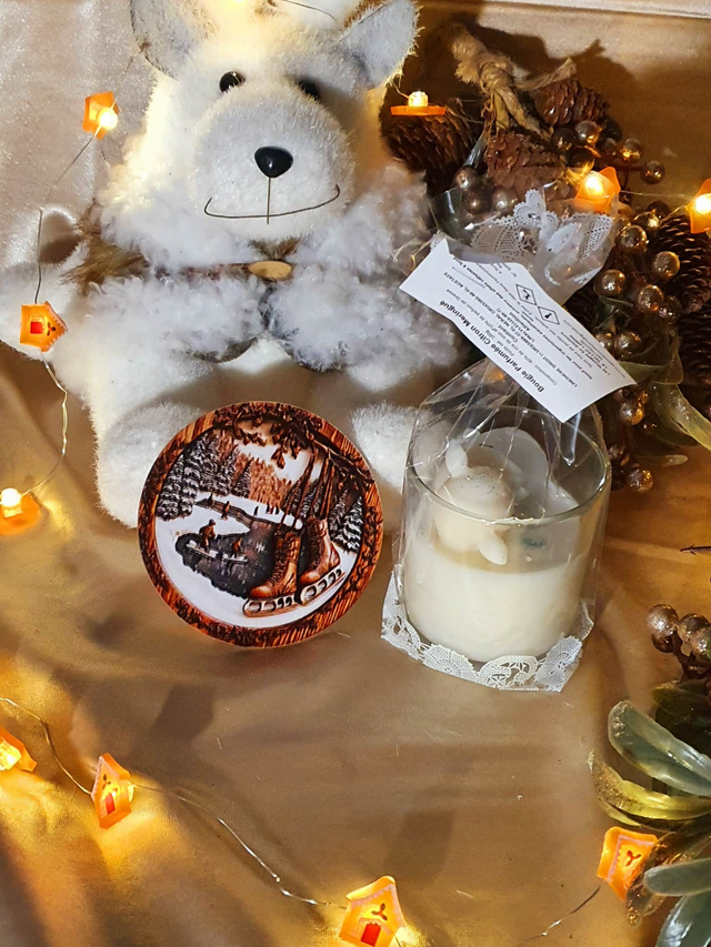 Bougie fournie avec un dessous de verre de Noël en bois (modèle aléatoire selon le stock disponible)